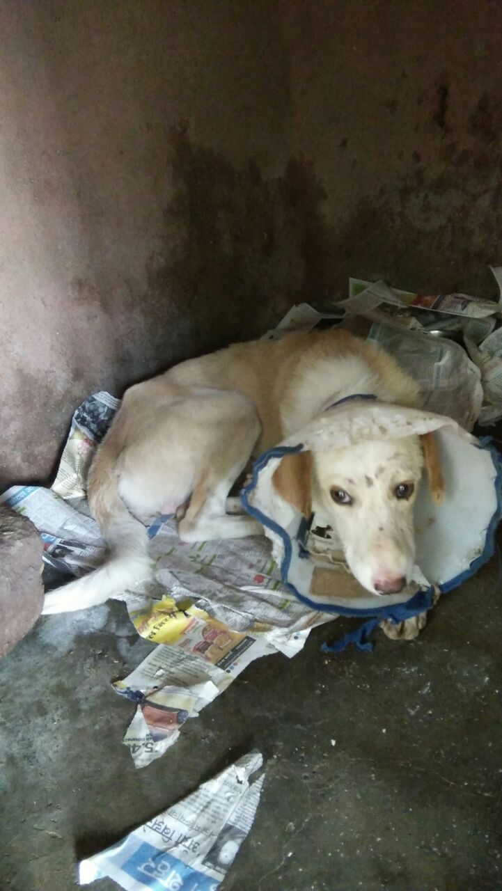 ILU ( as named by the security guards ) was sent for neutering . He was operated upon but somehow a few days after the surgery his stitches got infected. So he’s been on medication since then and had to stay a few days extra at the Animal Farm.