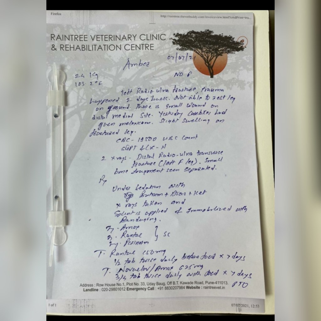 @shru_boho and Ian were extremely kind to take her to the vet this morning and her x-rays confirm that she had a break and has a fragment of her bone poking her muscle. I can’t even imagine the pain.