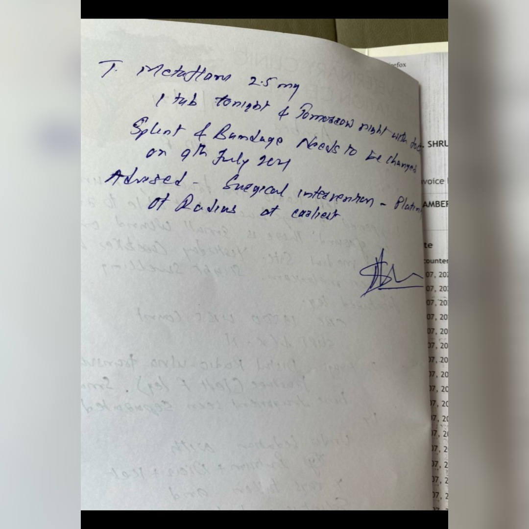 @shru_boho and Ian were extremely kind to take her to the vet this morning and her x-rays confirm that she had a break and has a fragment of her bone poking her muscle. I can’t even imagine the pain.