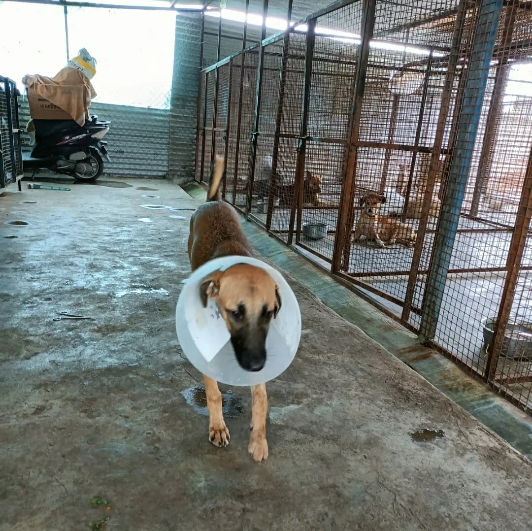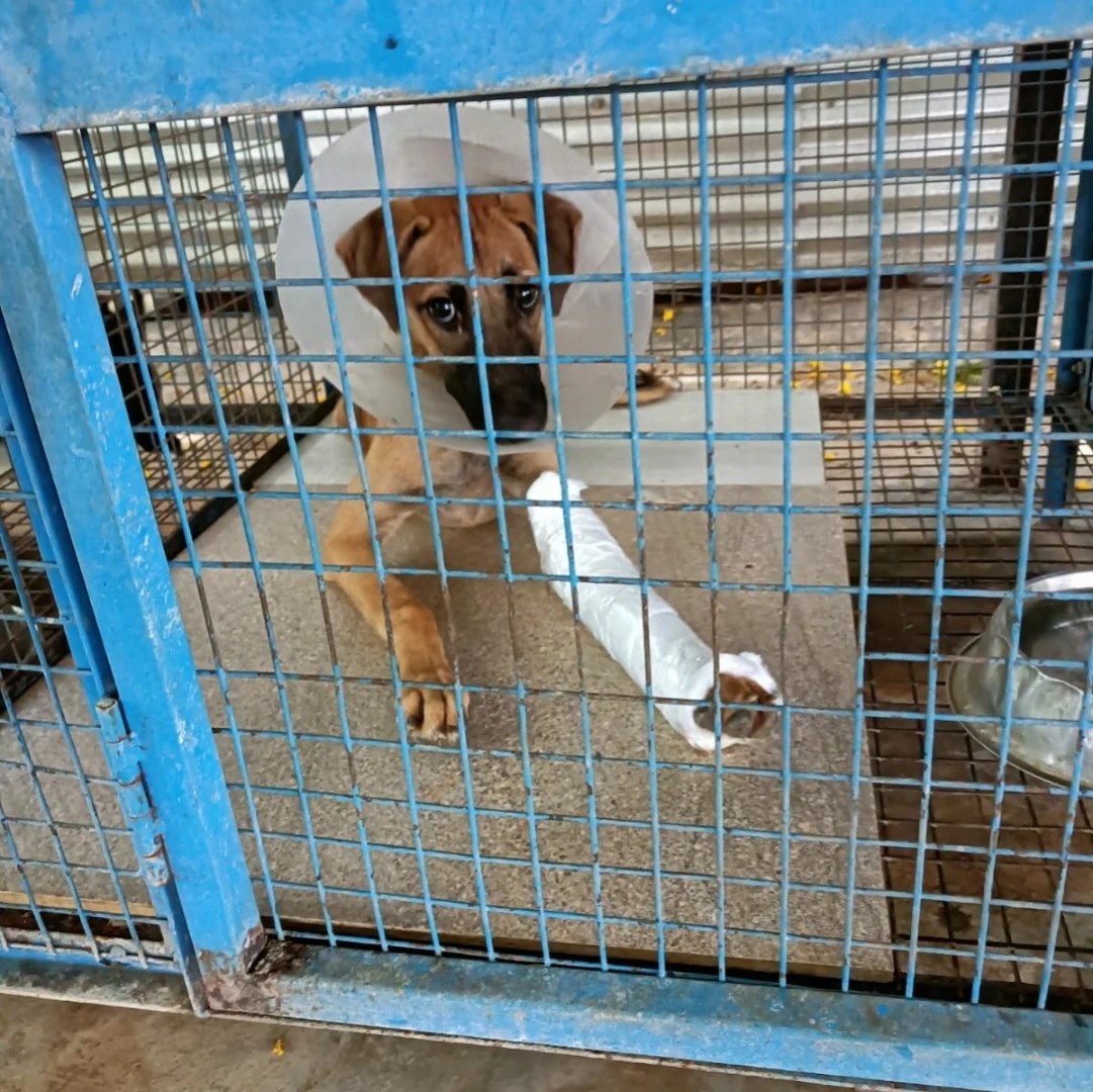 Ruku is recovering in a shelter in a smaller cage because she needed to be immobiliised.