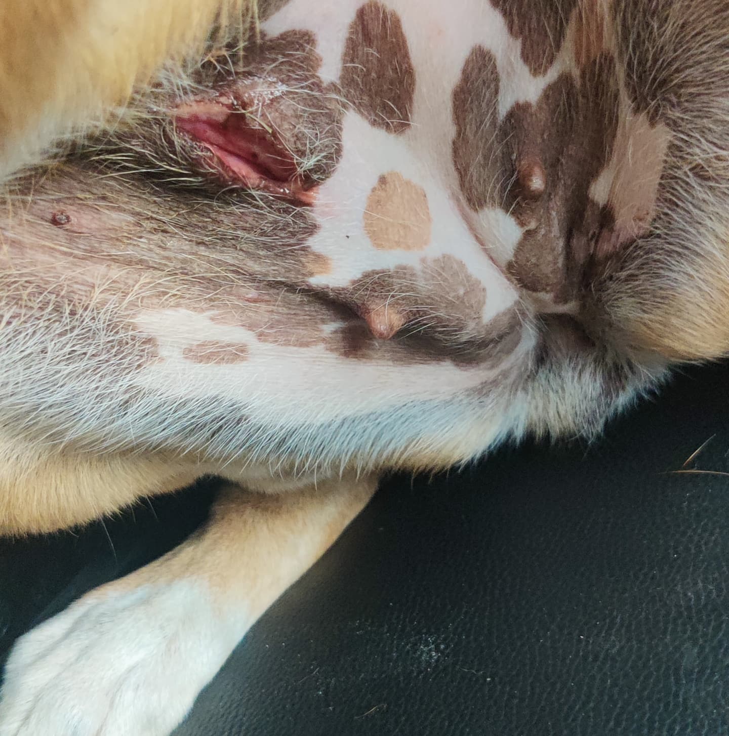4. FOXY- Has a deep tissue gash on her mammary gland. Was sent to Resq for initial assessment and now admitted at Petsforce.
