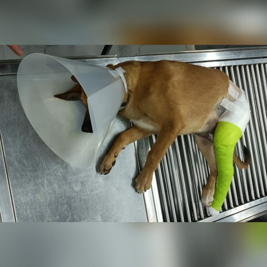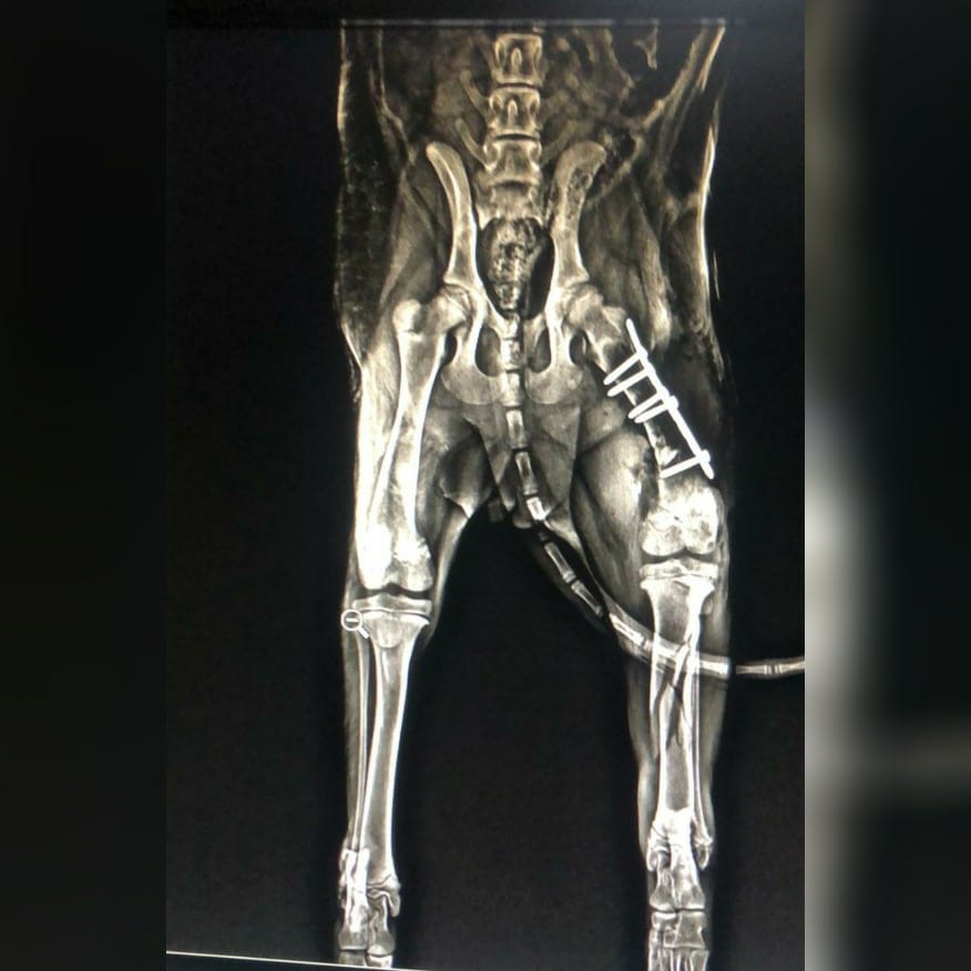Our baby girl Maple had her surgery yesterday. She has had a plate inserted in her hip joint (slide 3)and the other two breaks have been aligned and plastered.