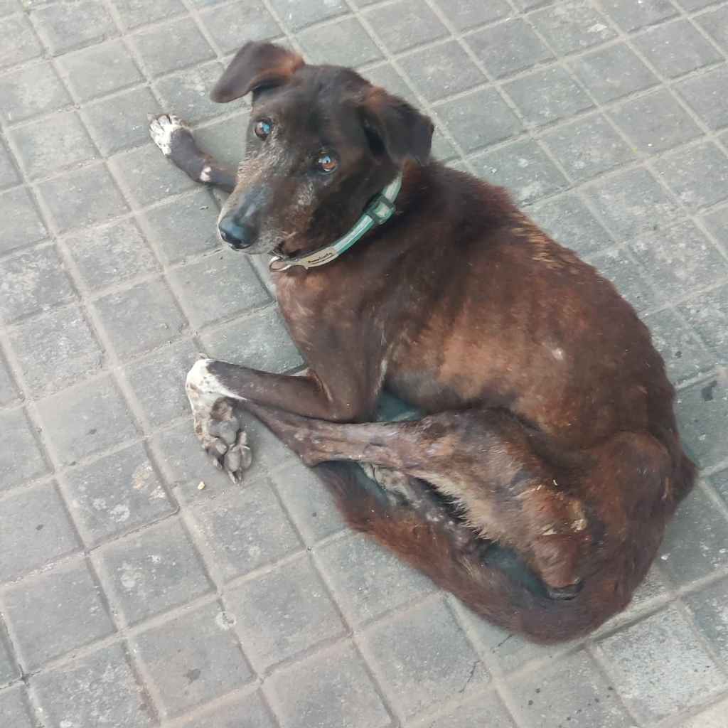 Last week, on my feeding rounds again, i suddenly noticed an old, skinny and very weak doggy walking aimlessly on the road…