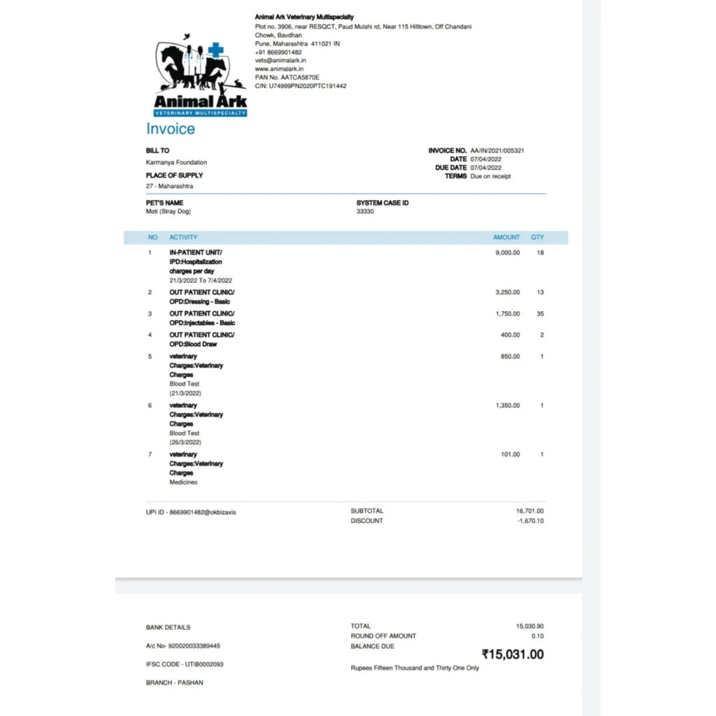 Moti is doing much better . His wound is now free of infection and healing well. Every night i go to sleep after praying that he doesn’t fiddle with his wound at night when no one is watching- coz everytime he did that, it took us back by 4-5 days , which meant he would need to stay there a few days longer than anticipated – which means a few more thousands!