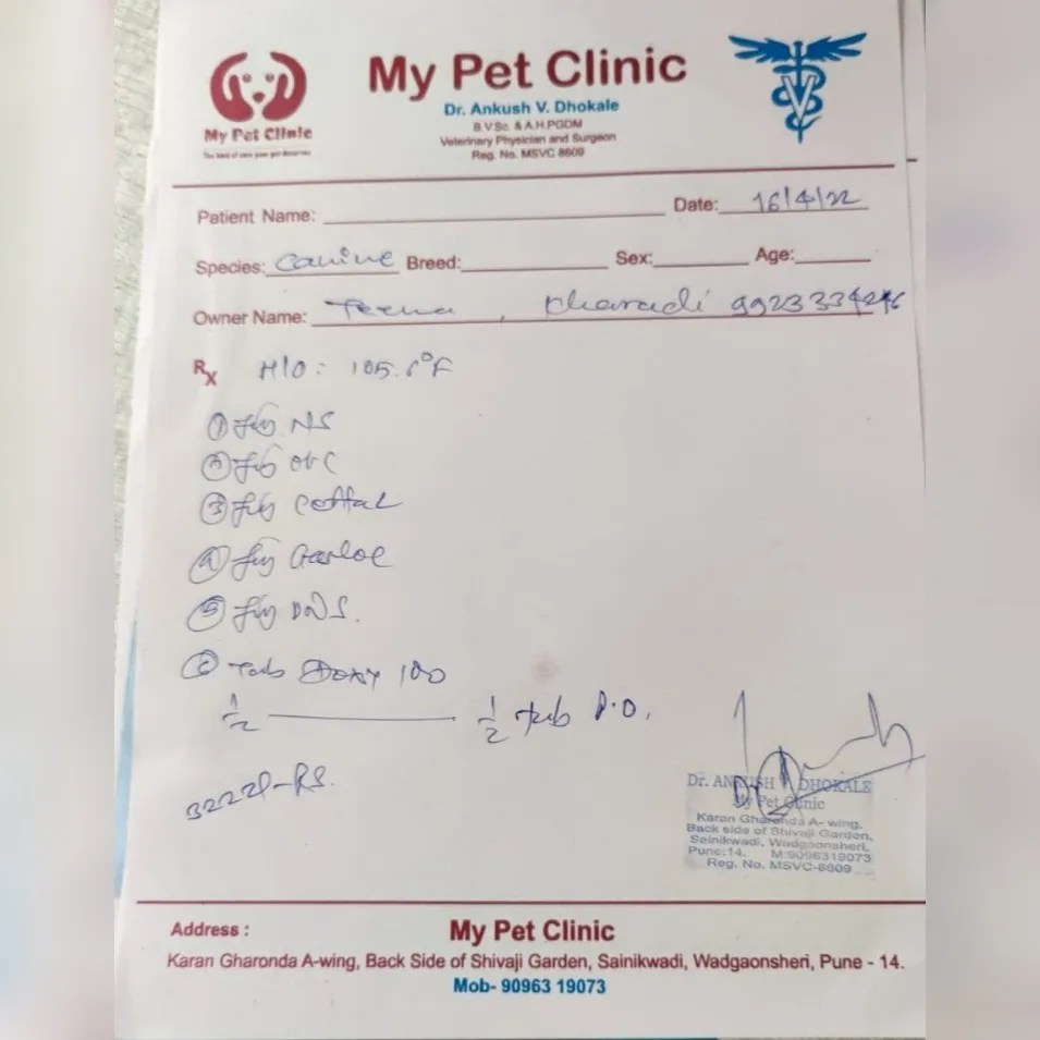 You can either gpay me on 9923334246 or even pay the vet directly. Ping me and i shall provide the details