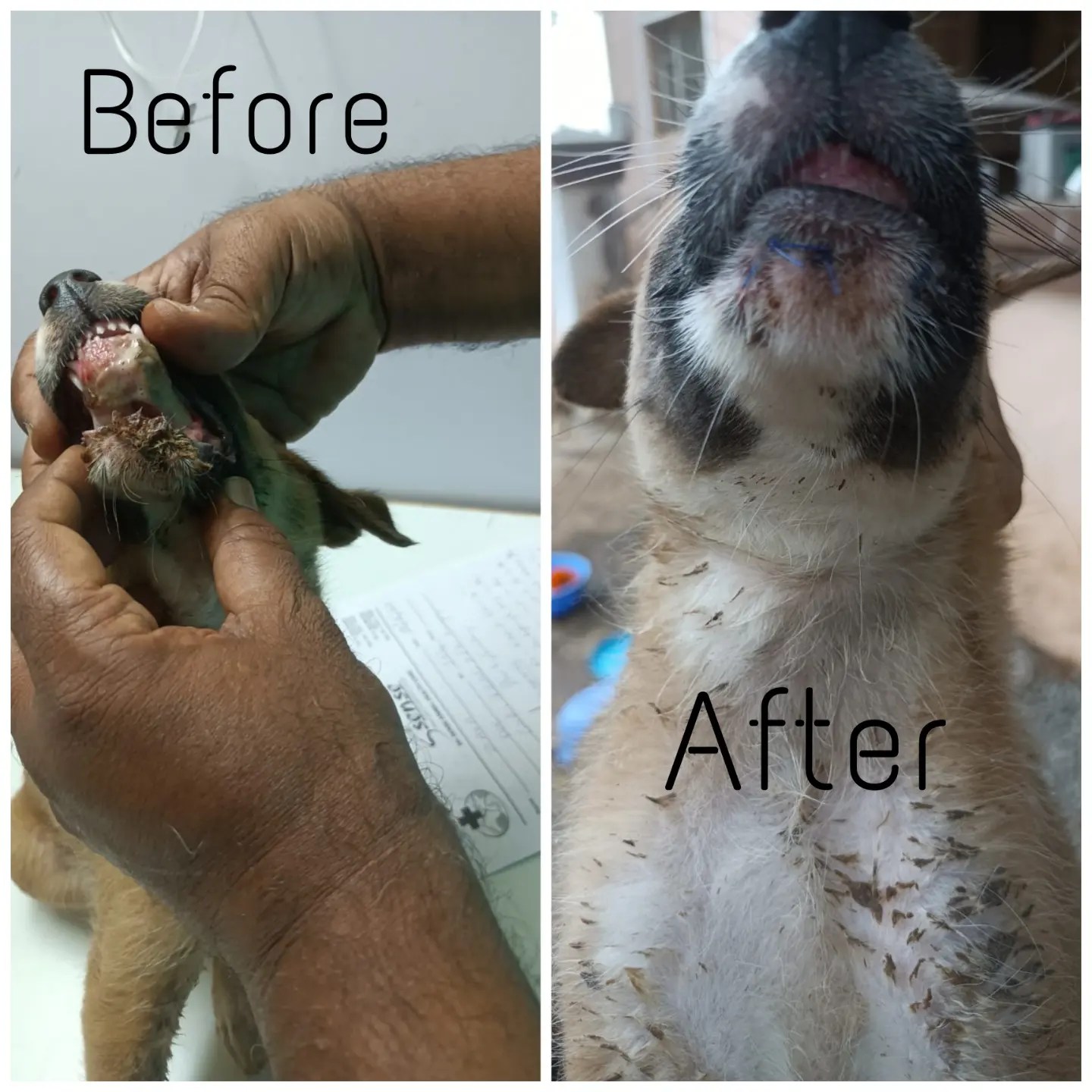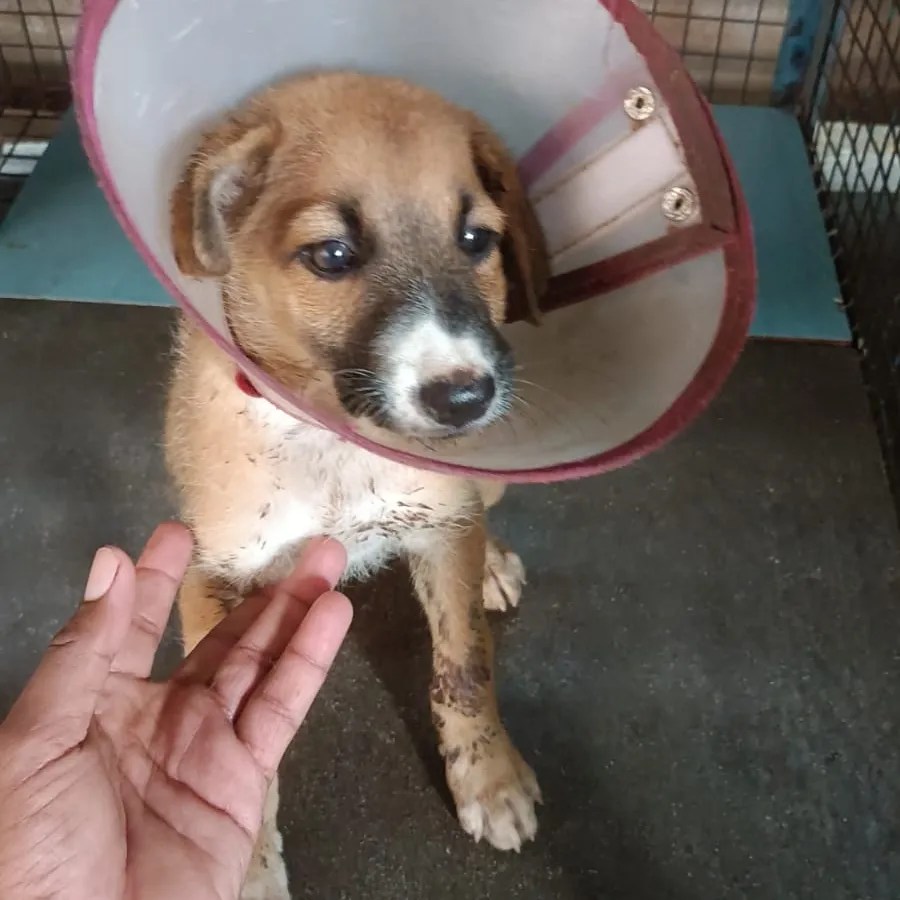 Our sweetheart Kevin has been stitched up. Luckily it wasn’t a jaw break. It was a bad bad tear which the vet has stitched up.