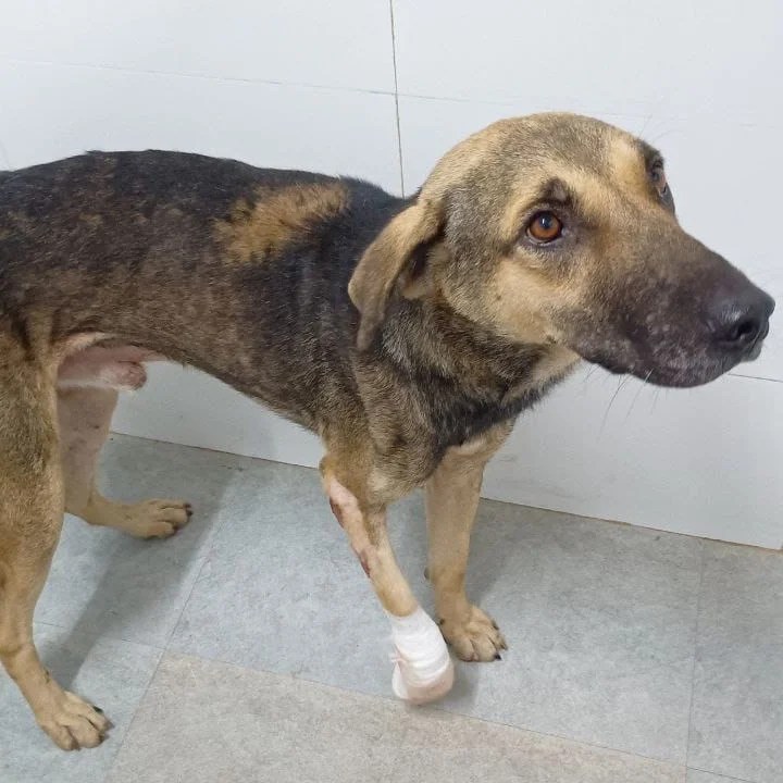 Pillya has paralysis in the front leg and there is no other option than amputation. His blood work has been done and his levels are not up to the mark for surgery just yet, so we will have to put him on meds and supplements before we do the amputation.