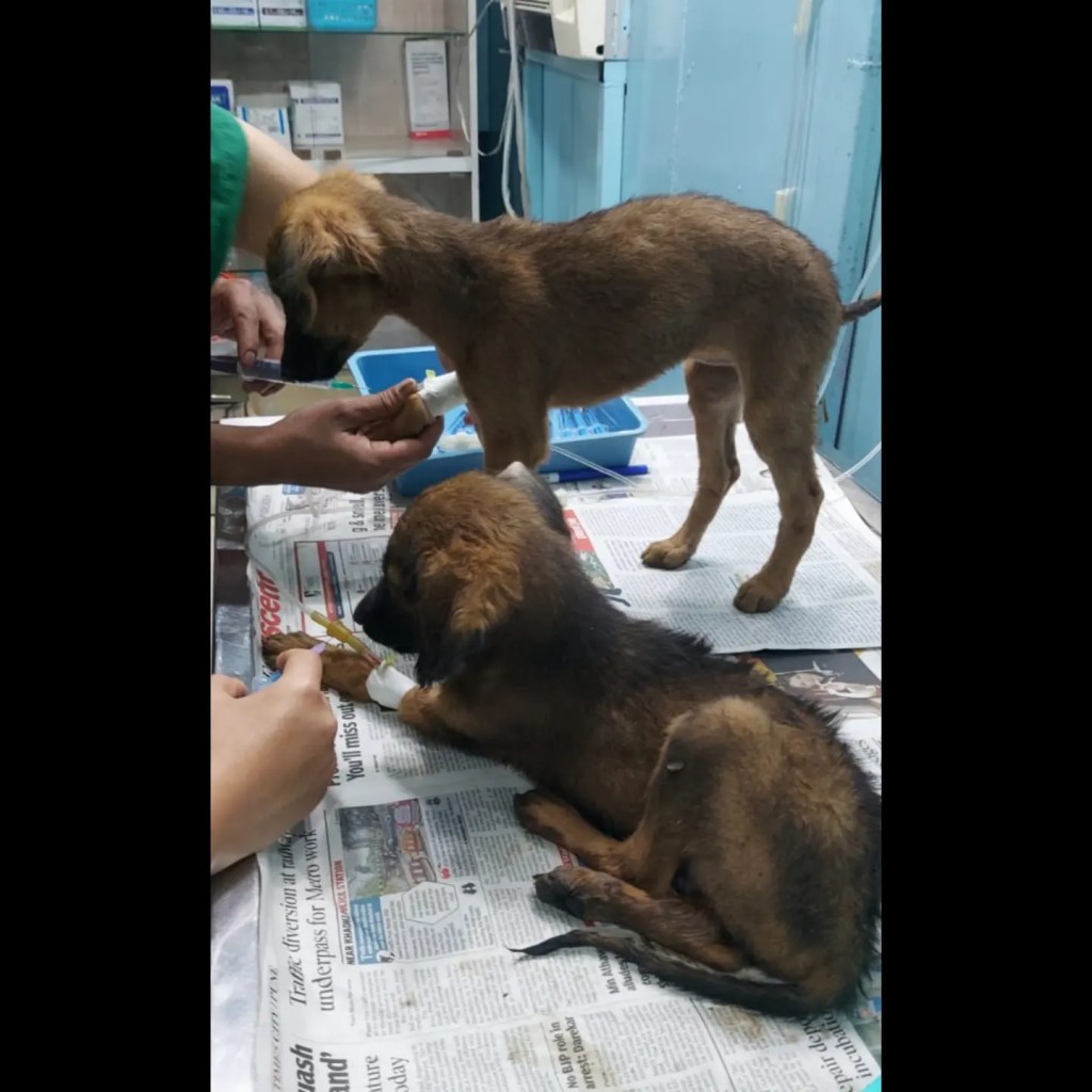 One is healing from a fracture but luckily doesn’t have parvo because she was sent away for her fracture recovery to a private foster before they caught the virus.