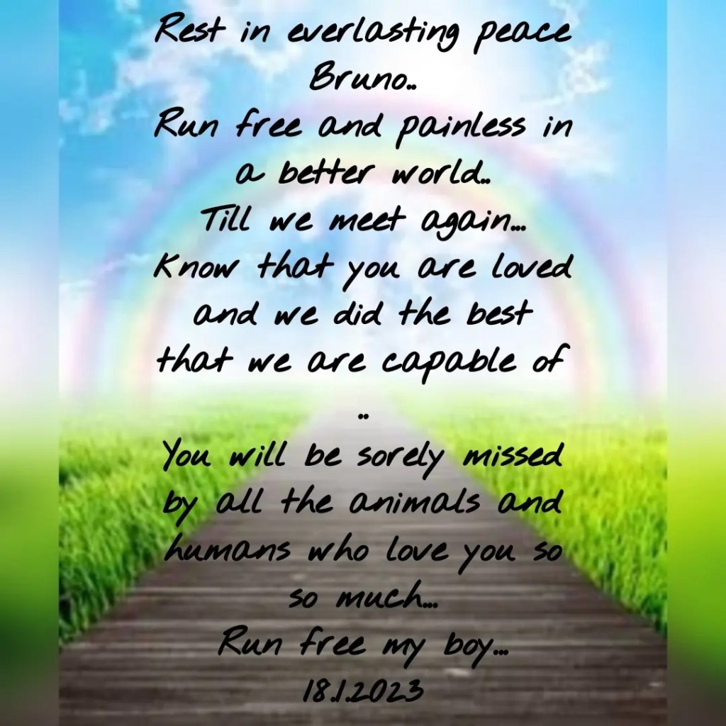 We pray you are in a better place Bruno and pain free.. run free love…know that we did the best we could and you were a very very strong boy till the end..