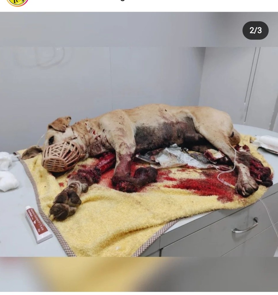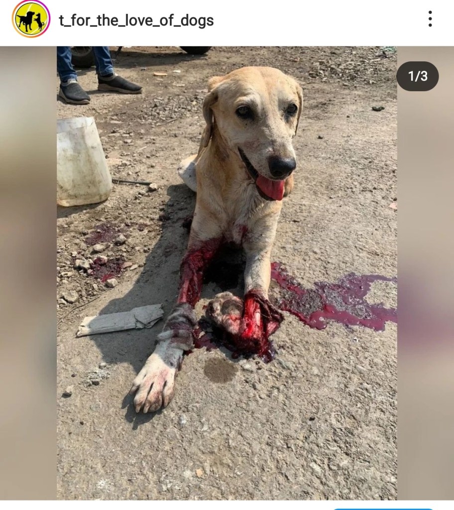 The dog is admitted thanks to volunteers who reported (Tanvi)and went along with the ambulance @rajdeep2412 …There is one broken bone which does not require surgery but a Lot of muscle loss and hence recovery is going to take very very long.