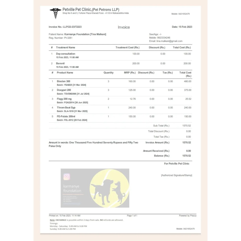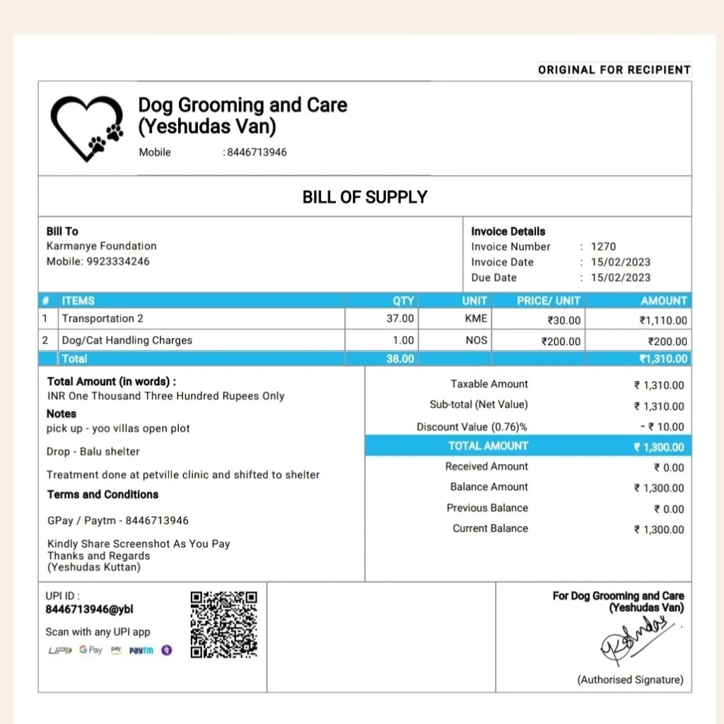 The vets and one way transport bills are attached above – Rs 5700 already ..