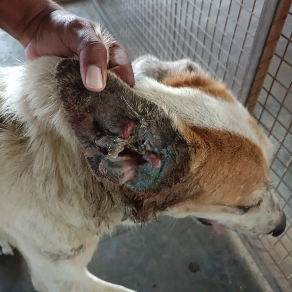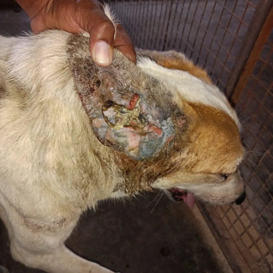 Last week I received a message that Gundu ma wasn’t looking good and since then we’ve kept a keen eye and this morning I received a call that she was stinking bad and had a bad bad maggot wound which wasn’t seen before today.