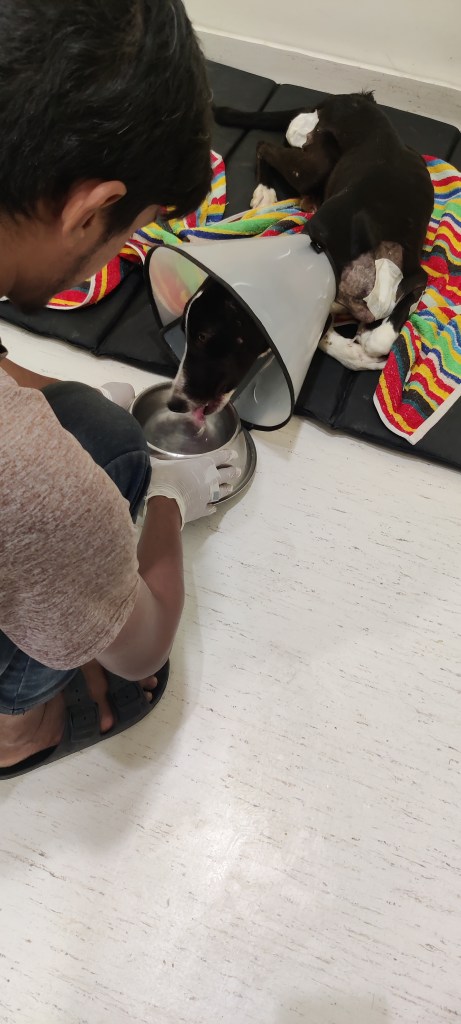 There is good progress upto now. He’s wagging his tail, lifting his head and even moving his hind legs…which wasn’t the case at all when he was admitted…another 15-20 days and we hope to see even more improvement and hoepfully release 🙏💞🐾