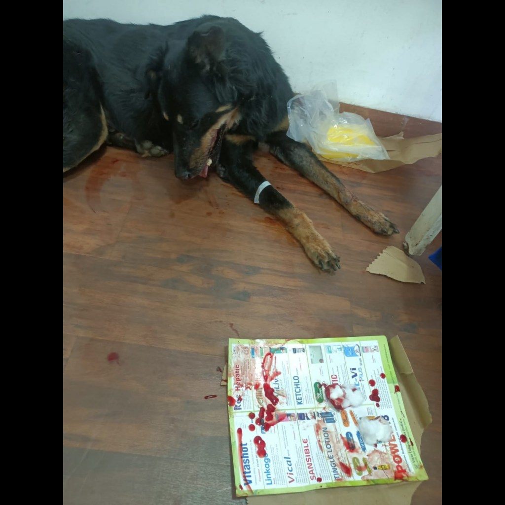I had to shift him to an emergency hospital and he is still intermittently bleeding… it’s lesser than the flowing blood in the morning and the vet said it will stop but it will take some time.