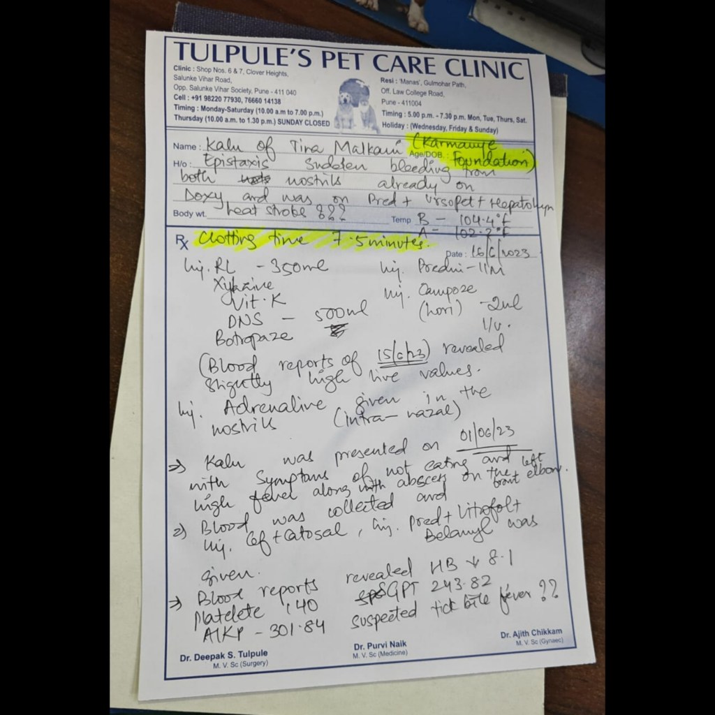 UPDATE : This morning Kalu was taken to the vet for a regular check up and was perfectly fine.. but as soon as he was taken off from the ambulance a lot of blood was noticed oozing out of his nose!
