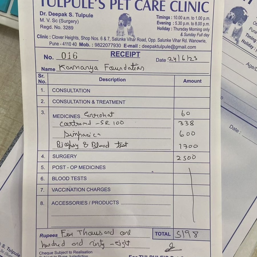 Bill of the surgery, biospy, blood test and medication is attached.