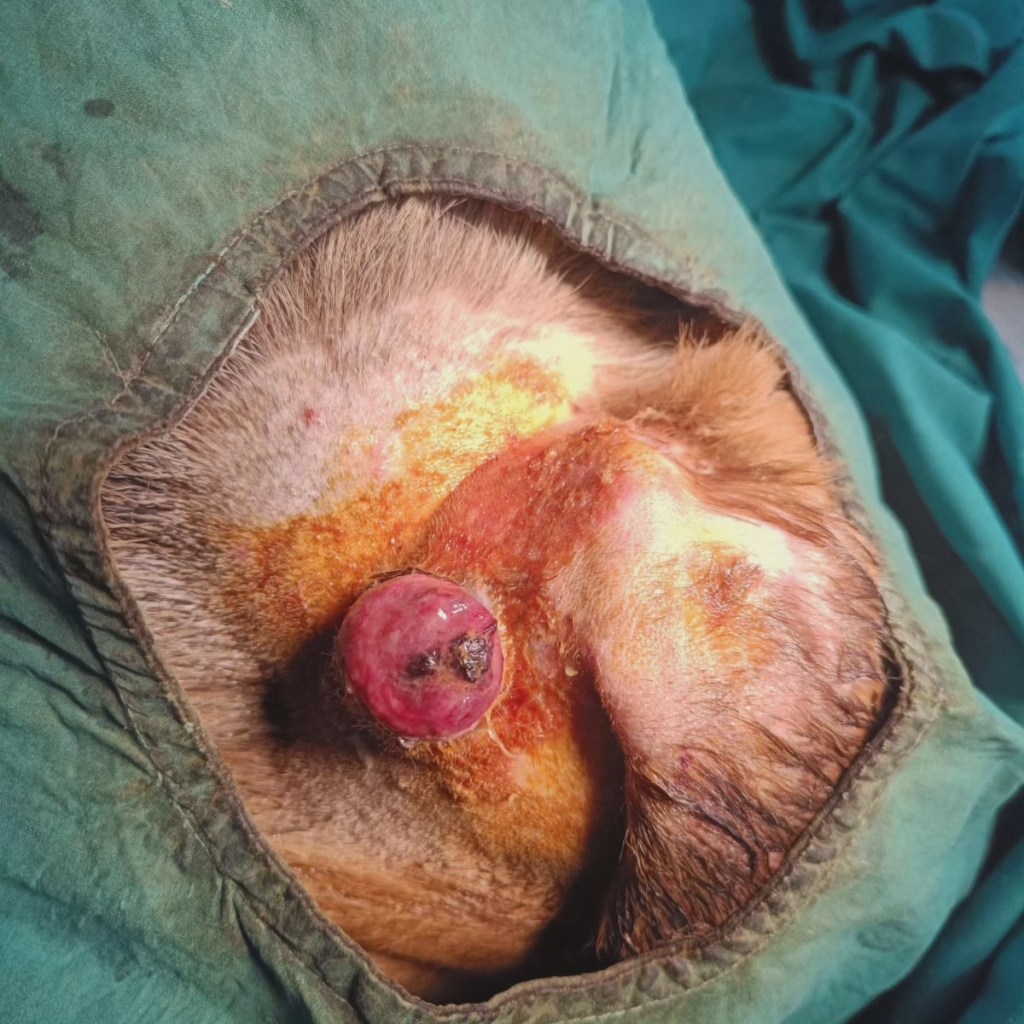 This sweet sweet friendly boy Rocky had a tumor near his ear ..he was sent to get it removed today…