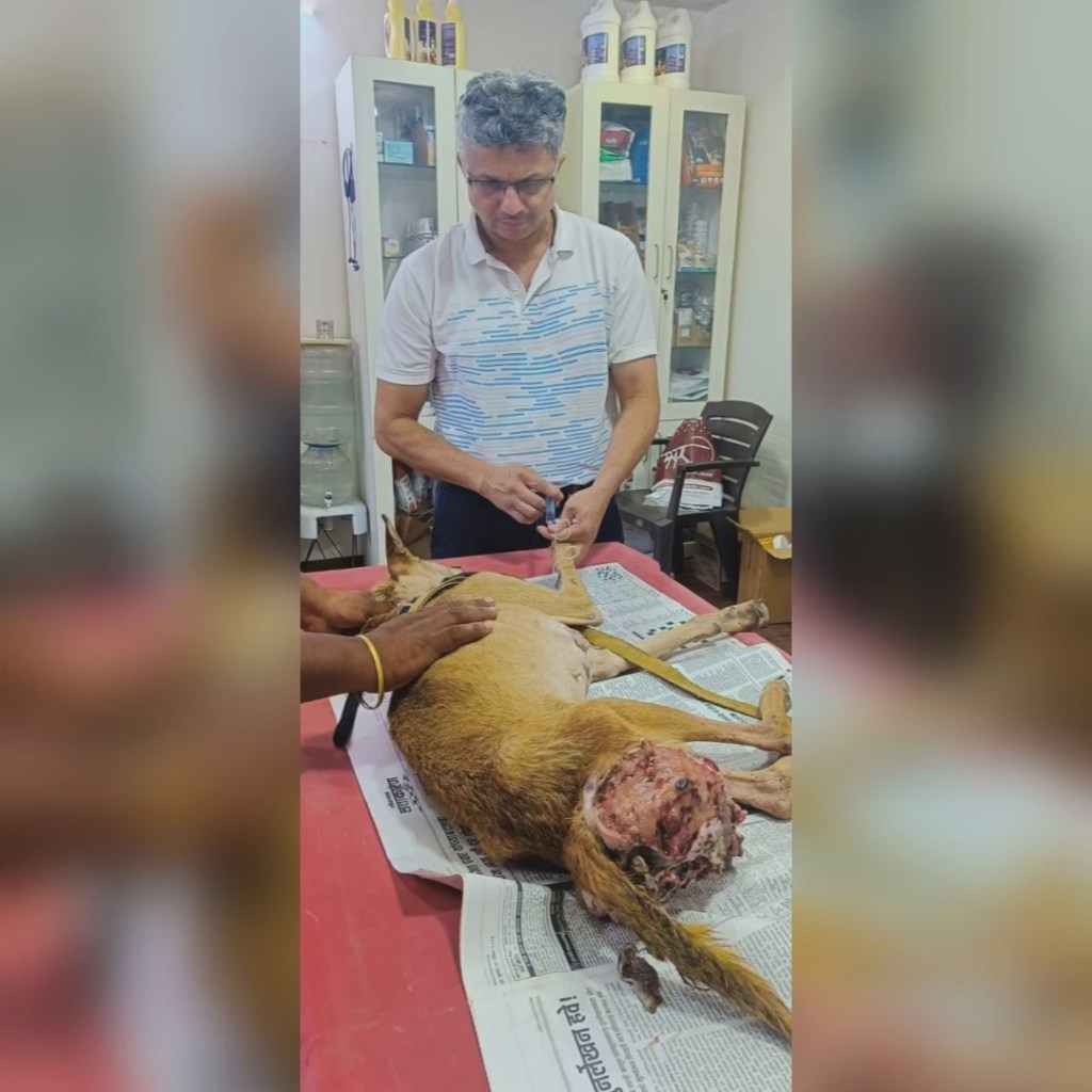 It’s been 10-12 days since Sundari has been in private foster and her tumor is already looking slightly better. No more blood dripping z no maggots and not stinking either. She’s not even continuously licking it like she was earlier – which is a clear sign that she is now comfortable.