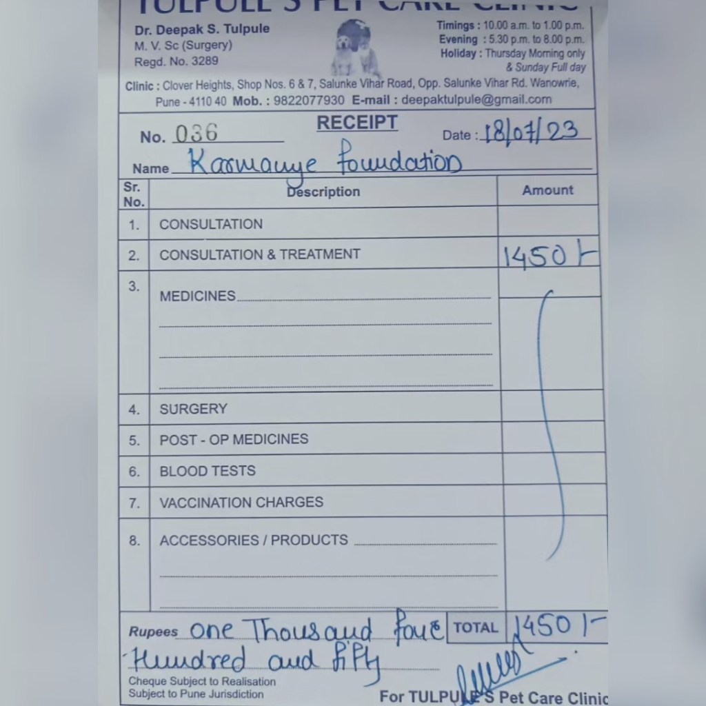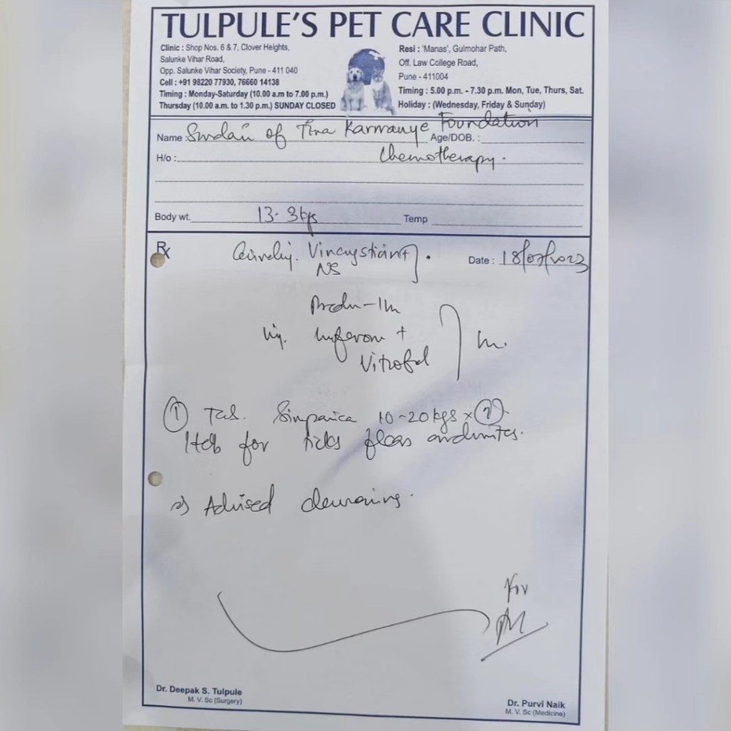 Every vet visit is about Rs 1200-1500 + transport to and fro approx Rs 1500-1800.