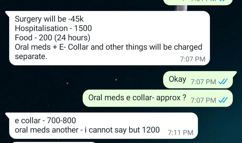 The vets say playing surgery is needed and just the surgery will cost Rs 45,000/- +stay at Rs 1500 per day for three days before we move him to a shelter +meds .