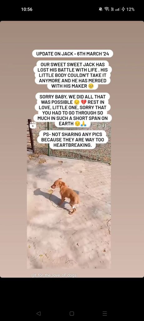 Our sweet sweet Jack has lost his battle with life . His little body couldn’t take it anymore and he has merged with his maker 🥺