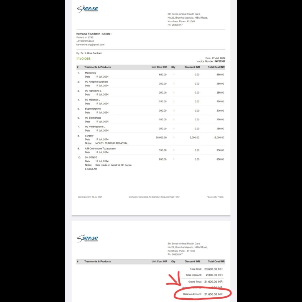 💰 The expenses have been huge. His surgery and medication have cost us Rs 21600.