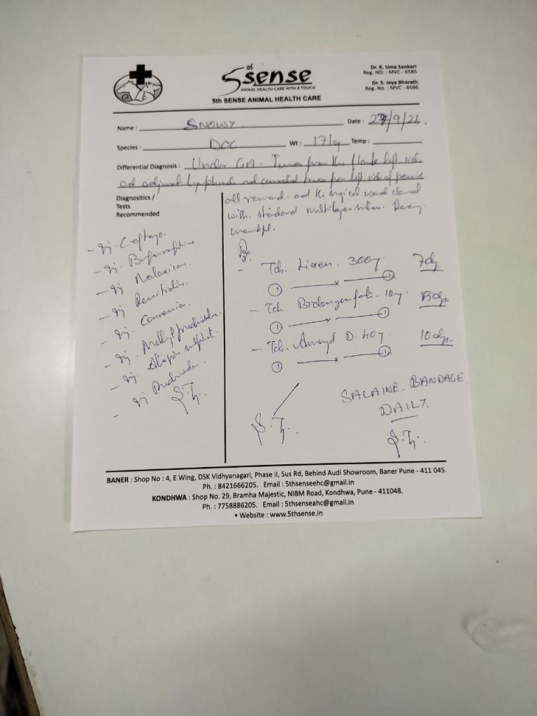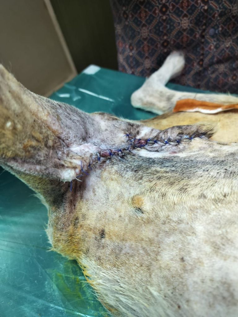 Snow was stitched up post that and we are hoping the stitches stay in place because it’s a large area to treat as an open wound ๐ค