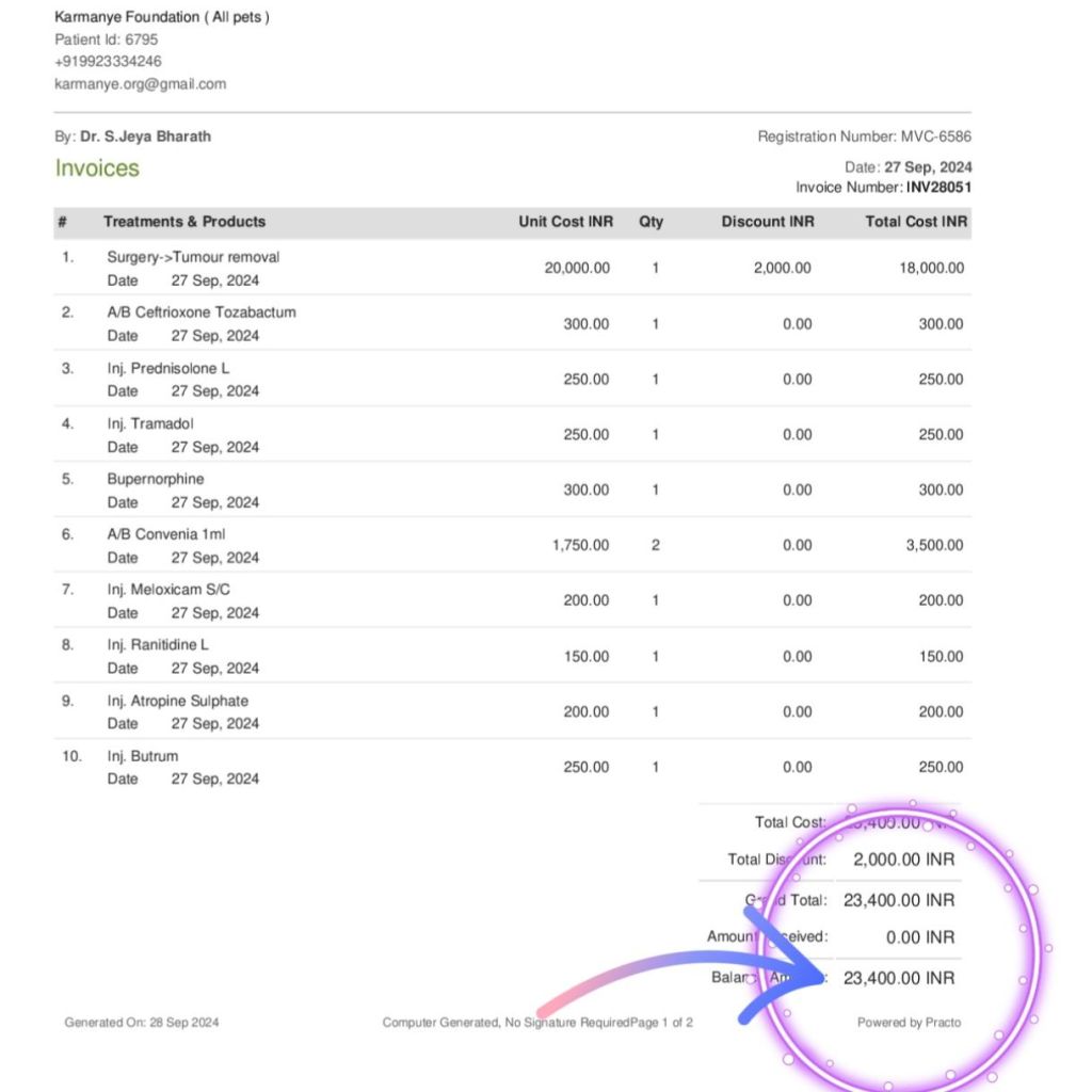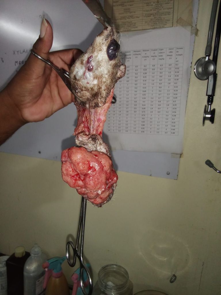 Snow was taken in for surgery day before yesterday. Initially we thought it will be a quick one but when Dr Bharath started to remove the tumor .. he realised it was way bigger than it looked form the outside. He had to dig and dig and go deep in to remove it! It turned out to be a slightly major and complicated surgery.