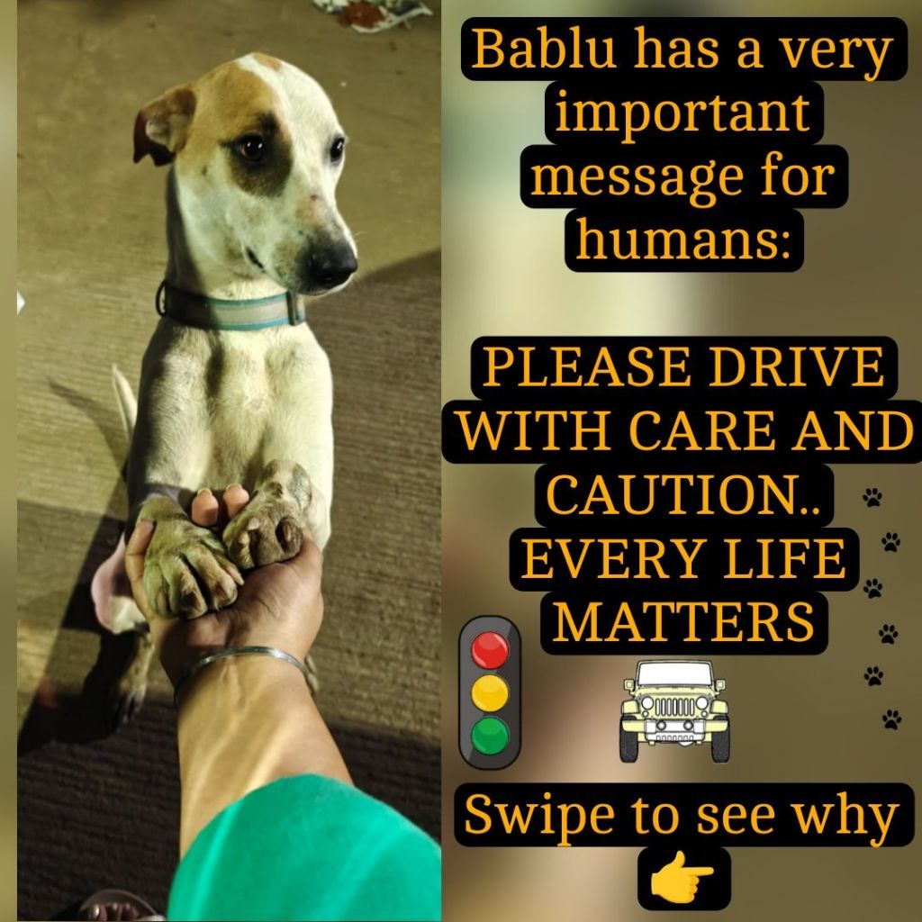 Bablu had just had his afternoon meal and was crossing the road, which he does every day and maneuvers really well π§Ώ… But he wasn’t so lucky last afternoon as some human who couldn’t care less was speeding so bad that he just ran over Bablu completely!