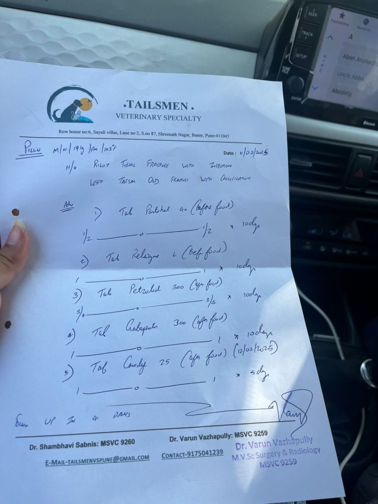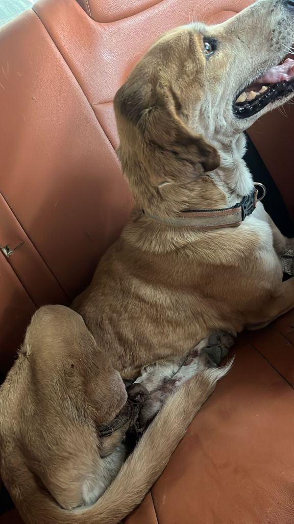 Pillu was found in this state after almost a month of disappearing. Looks like he was in a bad accident.
