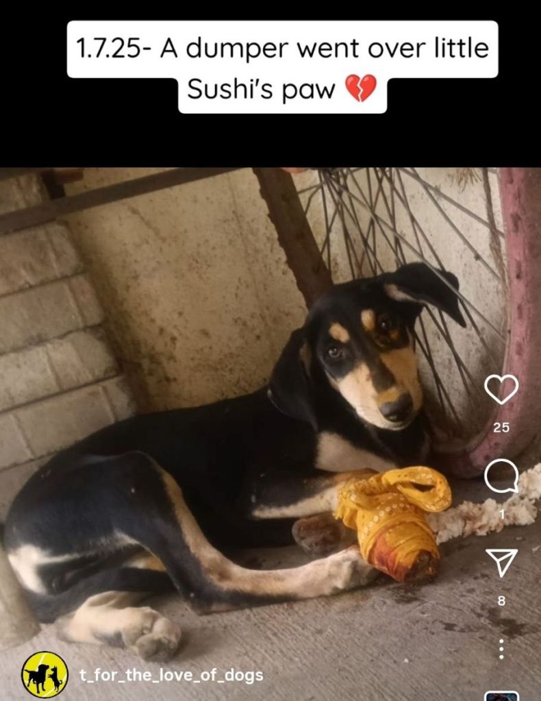 A dumper went over Sushi’s paw .. 💔 do watch the video..