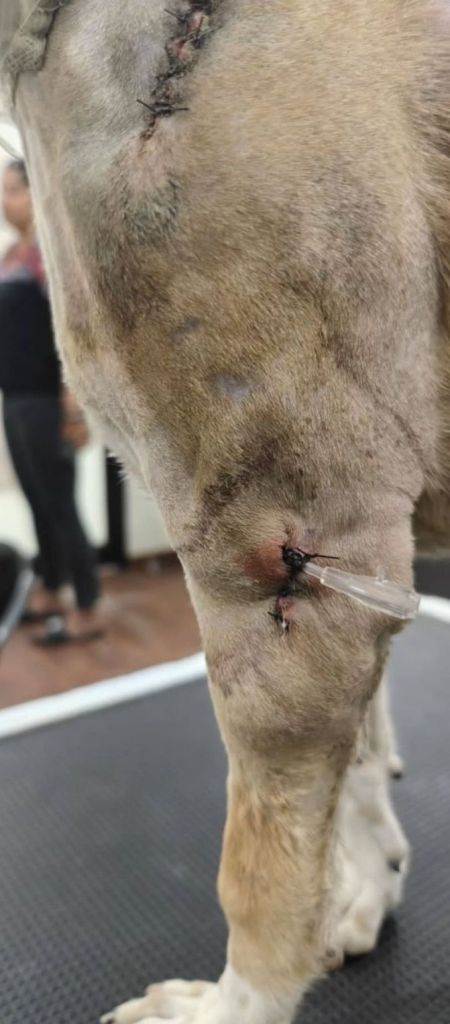 A drain has been inserted on the leg and we are hoping she will be fine soon.