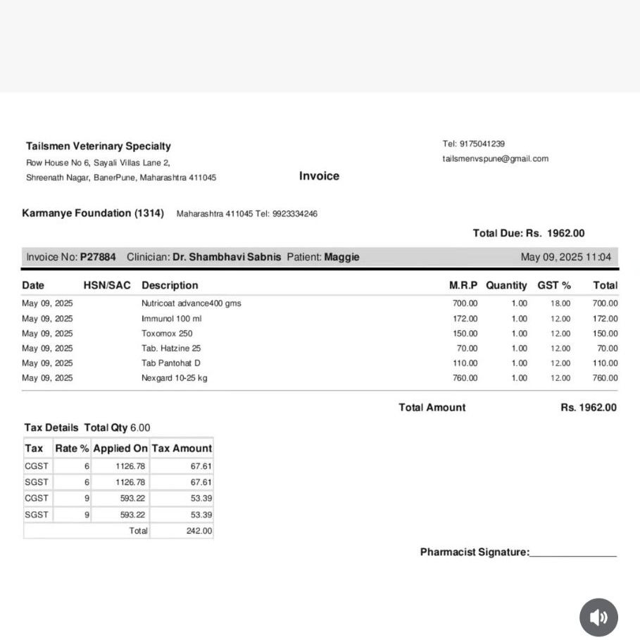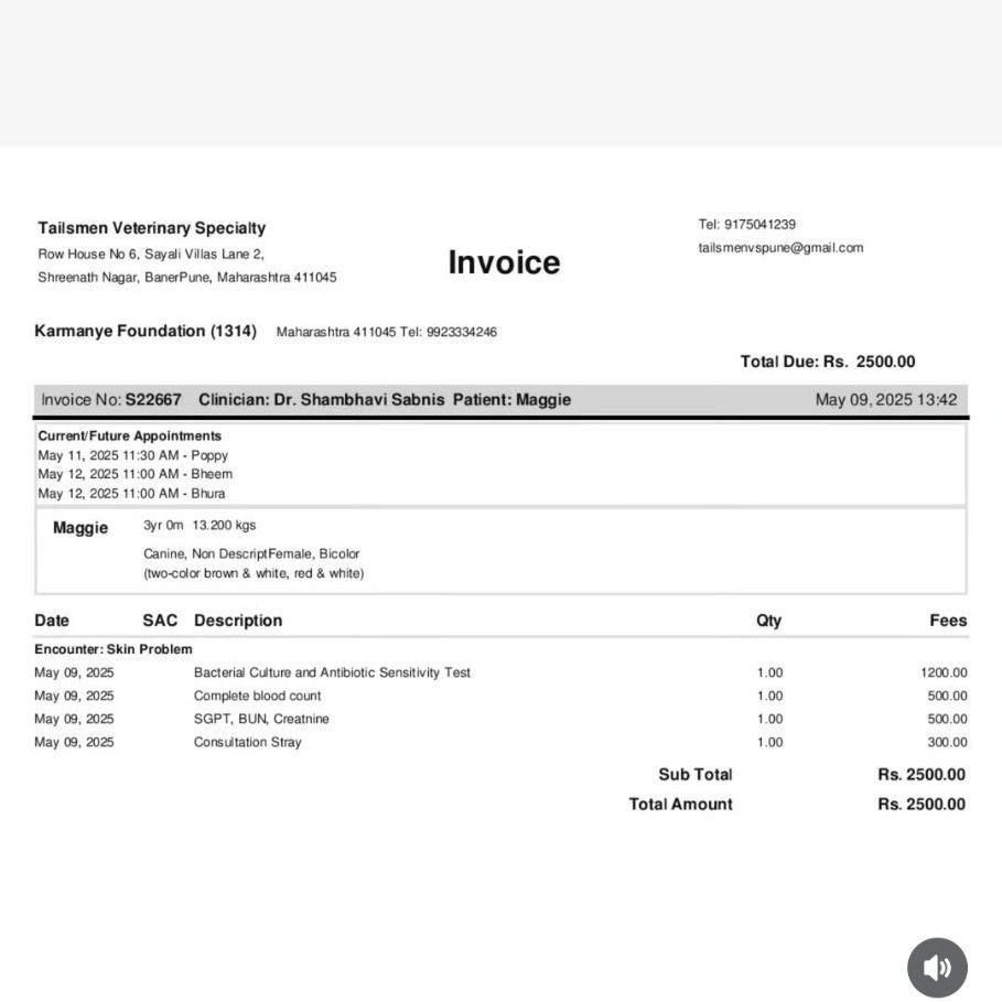 The vet bill which was Rs ,4400 has been very kindly paid by a lady who absolutely adores Maggie and we are very thankful to her ππ