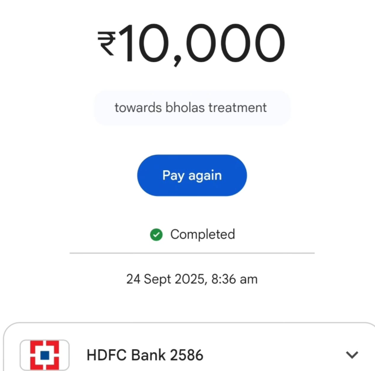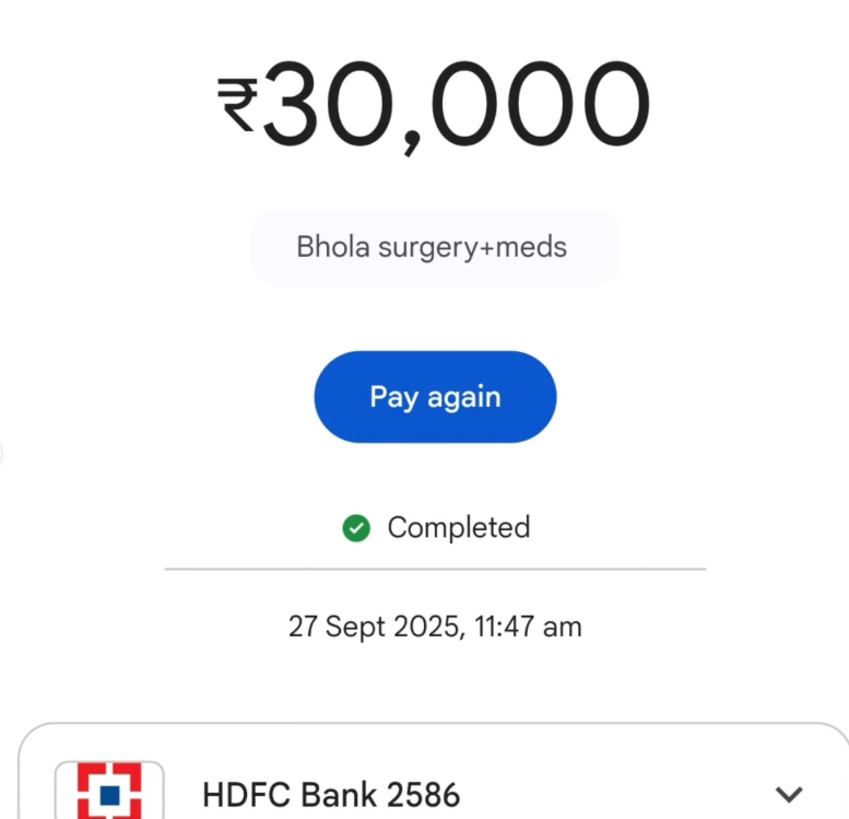 A huge thank you to all those who donated for Bholas surgery..it is only because of you all that we could go ahead with it ๐โฅ๏ธ