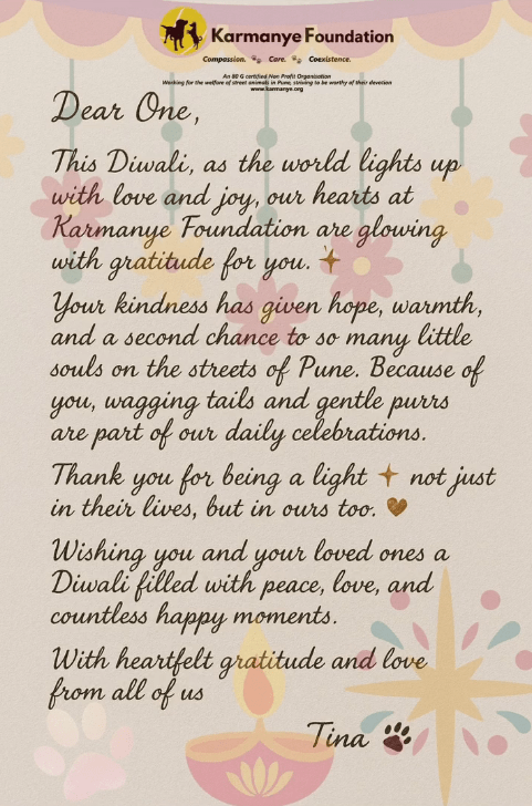 [Diwali 2025, pune ngo, Karmanye Foundation, indie dogs, indian dogs, pune dogs, community dogs, be kind , compassion, celebration with compassion ๐]