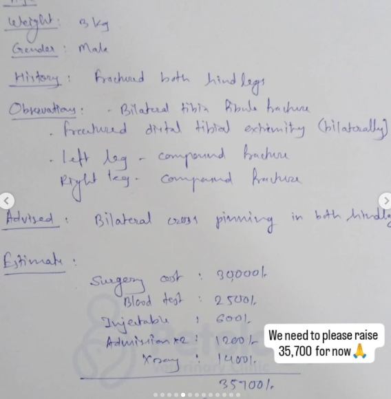 The estimate for the surgery and post care is approximately Rs.36,000/- (attached in the slides above,)