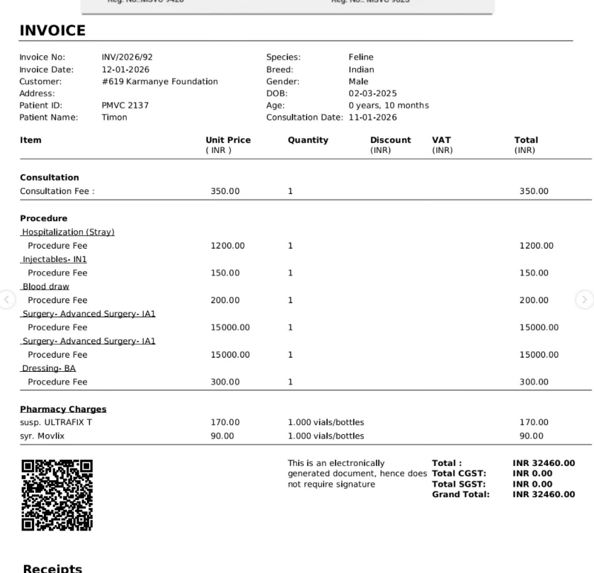The estimate of Rs 32460 is attached here but it’s going to be more because he has been admitted for many more days.