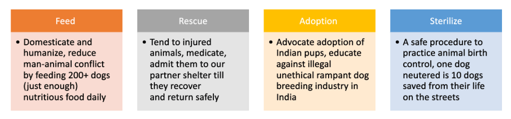 Karmanye works on the following 4 fronts to make sure that every needy dog gets what it deserves – take your pick!